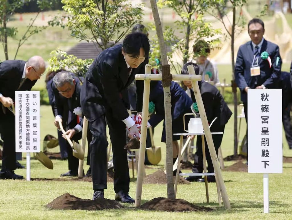 第36回全国「みどりの愛護」のつどいの式典に臨席後、植樹される秋篠宮さま=6月7日午後、千葉県松戸市