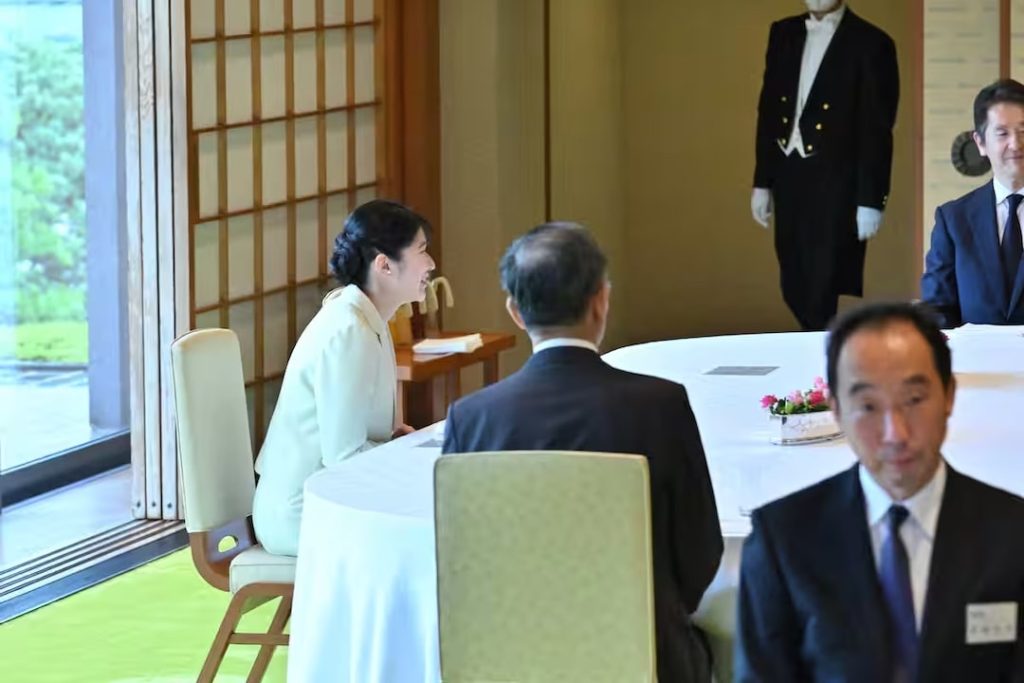 日本学士院賞受賞者や新会員らと懇談される天皇、皇后両陛下の長女、敬宮愛子さま=6月10日午後、皇居・宮殿「連翠」(代表撮影)