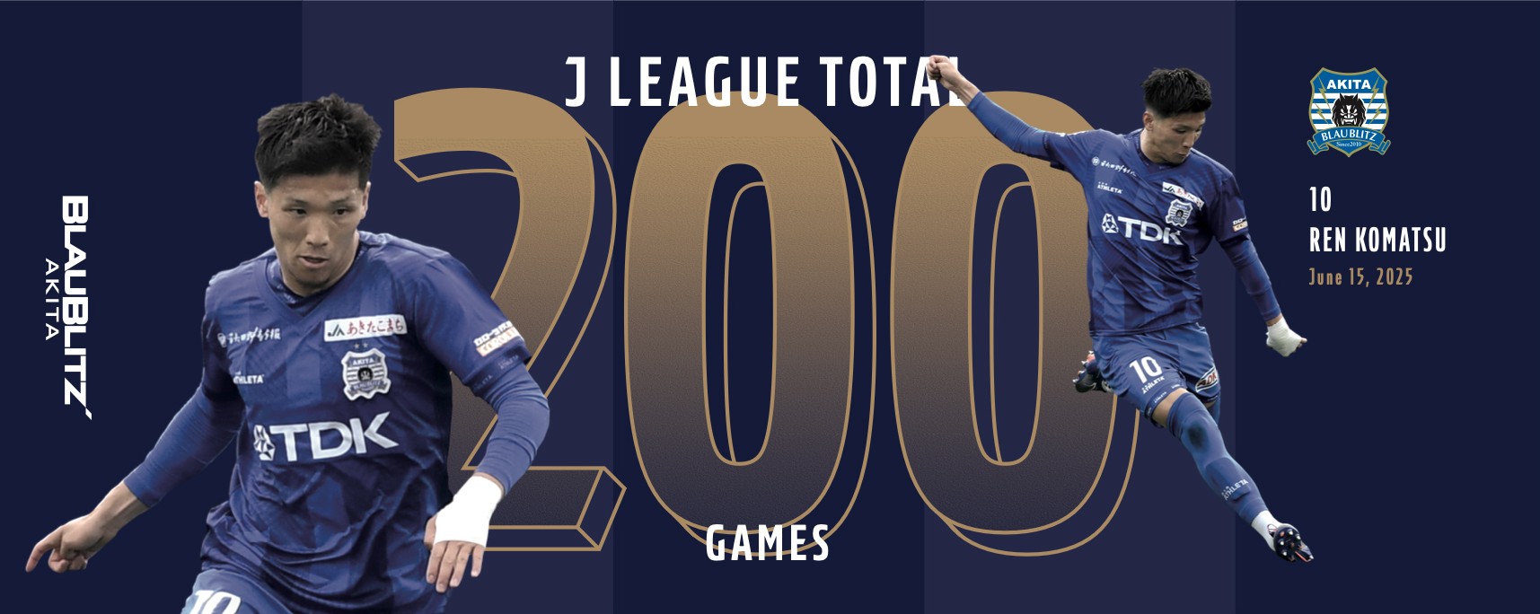 6月15日(日)開催の「2025明治安田J2リーグ 第19節 vs 大分トリニータ」にて、FW10 小松蓮選手がJリーグ通算200試合出場を達成いたしました。