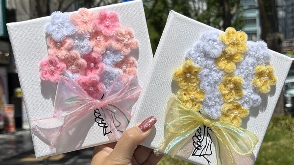 さらに、真っ白なキャンバスに、ハンドメイドの「枯れない花」を自由に貼り付け、香りをつけて仕上げるオリジナルの「キャンバスアート体験」4,500円〜(学割2,500円〜)も。