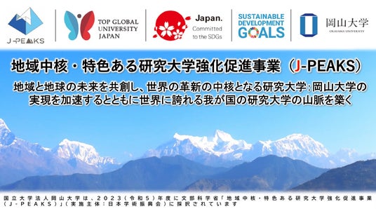 – 岡山大学 文部科学省「地域中核・特色ある研究大学強化促進事業(J-PEAKS)」に採択~地域と地球の未来を共創し、世界の革新の中核となる研究大学:岡山大学の実現を加速とともに世界に誇れる我が国の研究大学の山脈を築く~