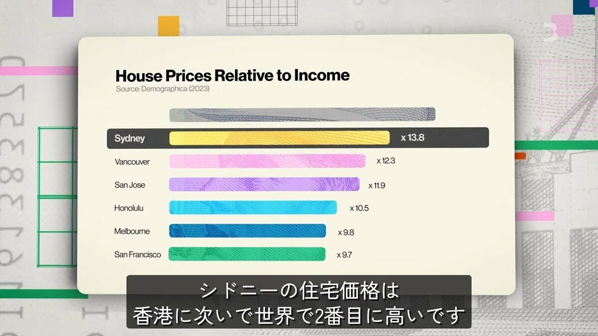 特にシドニーの住宅価格は、収入に対する住宅価格の中央値で見ると、香港に次いで世界で2番目に高い水準です。