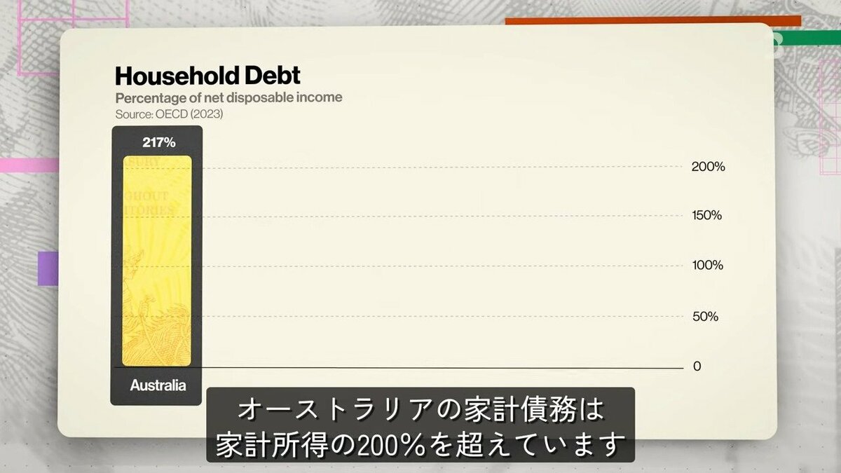 経済の健全性は、収入と支出のバランスで測られますが、オーストラリアの家計債務は家計所得の200%を超えており、これは世界でも最も高いレベルの一つです。