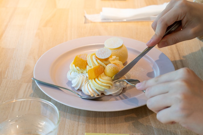 「メレンゲのサクサクと、その上に乗っているマンゴークリームと果肉の食感の違いが楽しかったです。アイスも濃厚で、マンゴーの風味が感じられてとても美味しかったです。」