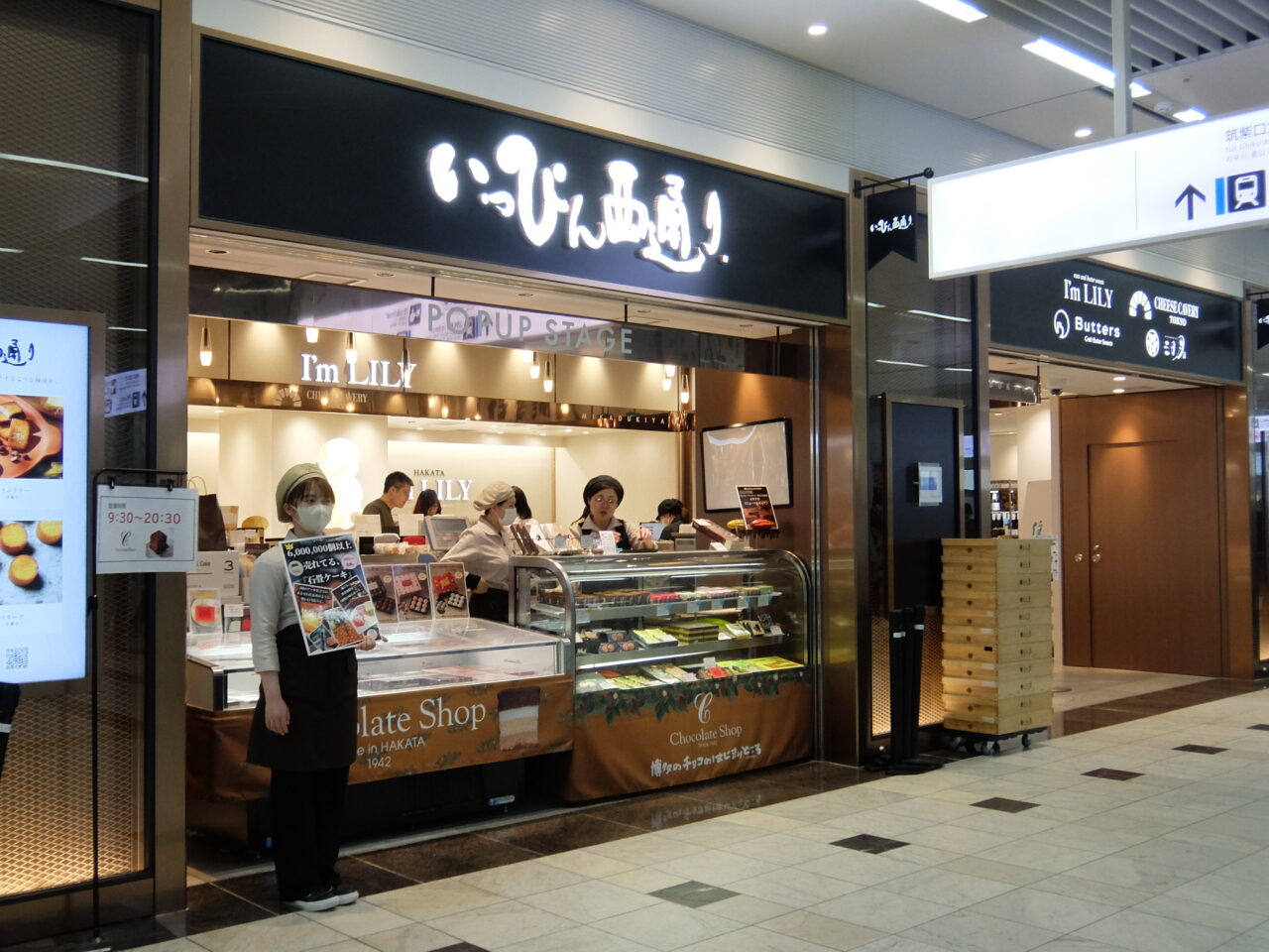 JR博多駅直結の複合施設「JR博多シティ」内アミュプラザ1Fにある、「チョコレートショップ 博多の石畳店」。 …