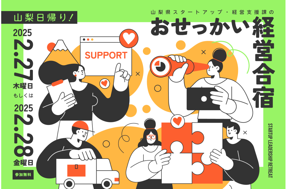 スタートアップ対象に「おせっかい経営合宿」を2月27、28日に開催:山梨県