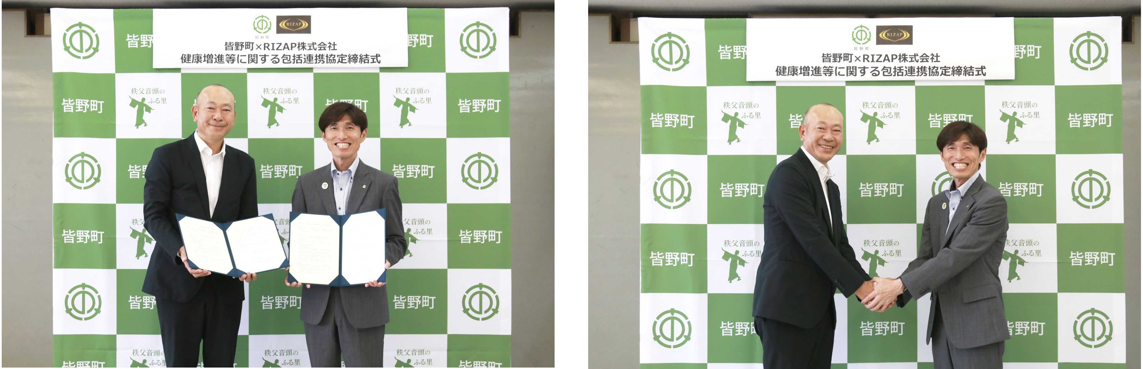 写真左から、RIZAP株式会社 執行役員 村瀬伸行、皆野町長 黒澤栄則