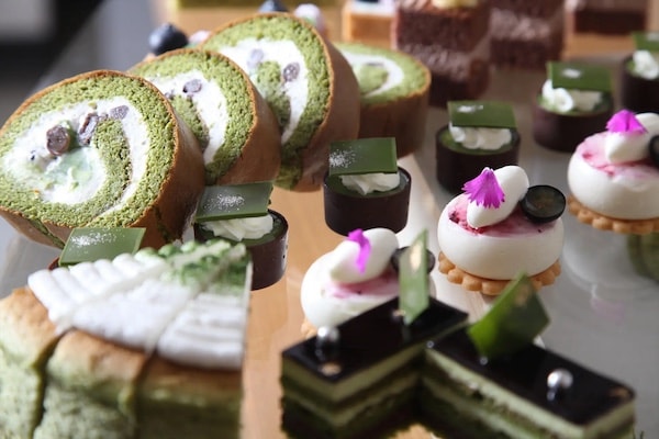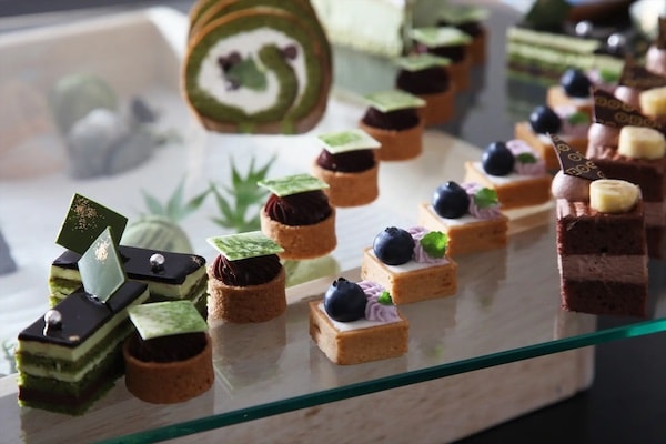 スイーツは約20種類をそろえる。ショートケーキ、マカロン、ティラミス、プリンなどのほか、和と洋を調和させた特別なスイーツも。