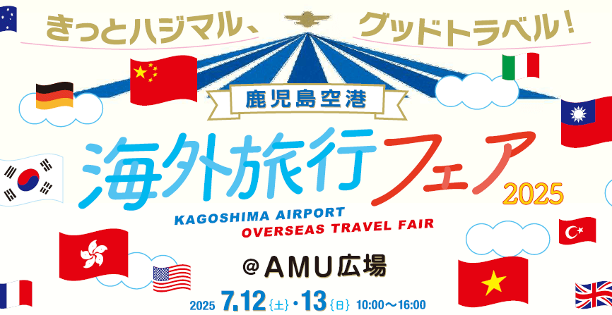 7/12(土)、13(日)の10~16時、鹿児島中央駅 AMU広場で「海外旅行フェア2025」を開催します。
