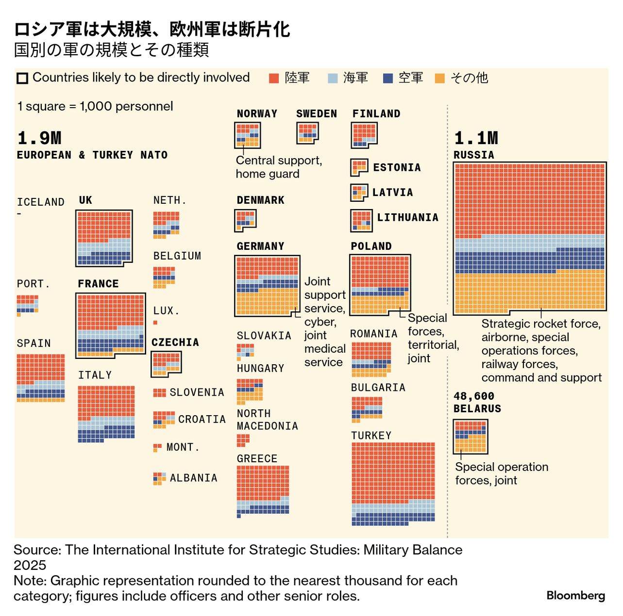 欧州の情報機関の分析によれば、プーチン氏が既にNATO領内に戦争を拡大する計画を策定した兆しはない。だが、ロシアは軍の再編を進め、西側をはるかに上回るペースで兵器備蓄を積み上げている。