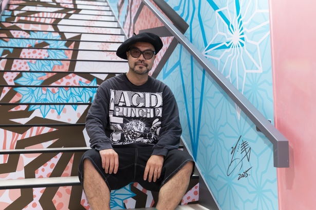 【写真】2階への階段の壁には大阪を代表するアーティスト・BAKIBAKINGさんによるアートが
