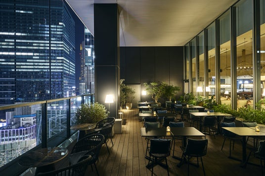 渋谷ヒカリエ11Fの「THE THEATER TABLE」は、渋谷の街並みを一望できるダイナミックなパノラマビューが広がるテラス席をご用意。