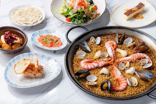 大阪「バルチカ03 エキウエ」3Fに位置する「XIRINGUITO Escriba Osaka」は、バルセロナの海辺にあるレストランを思わせるような、開放的でリゾート感あふれる空間のパエリア専門店。