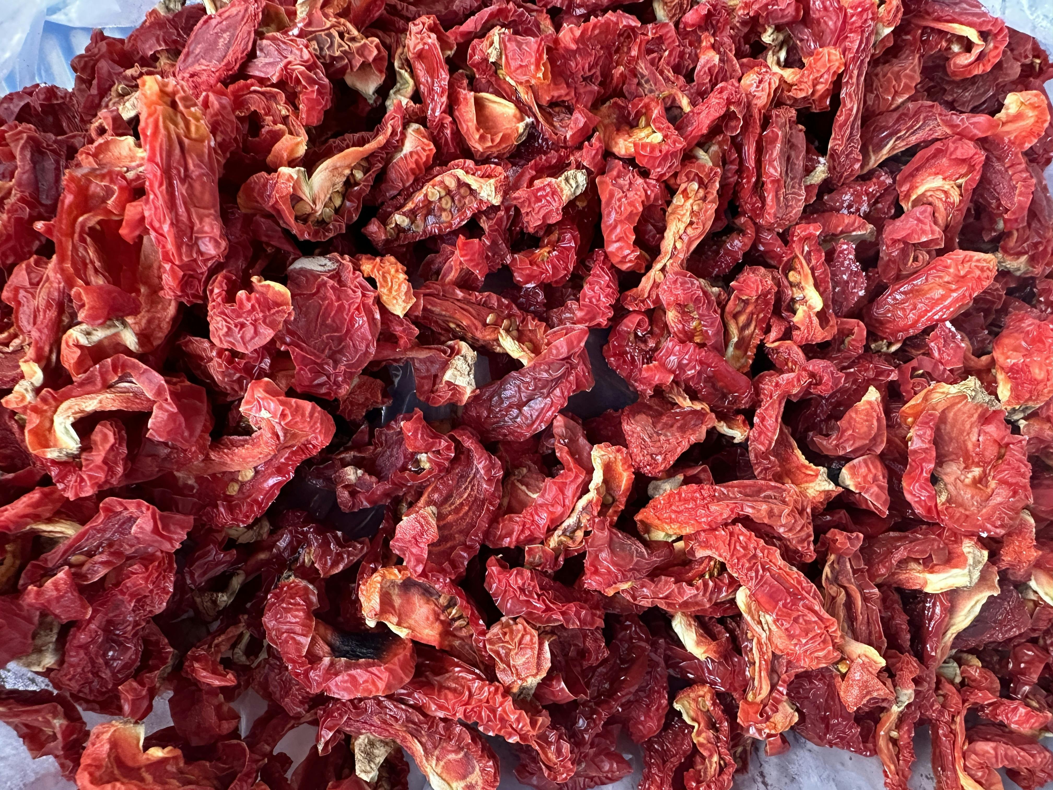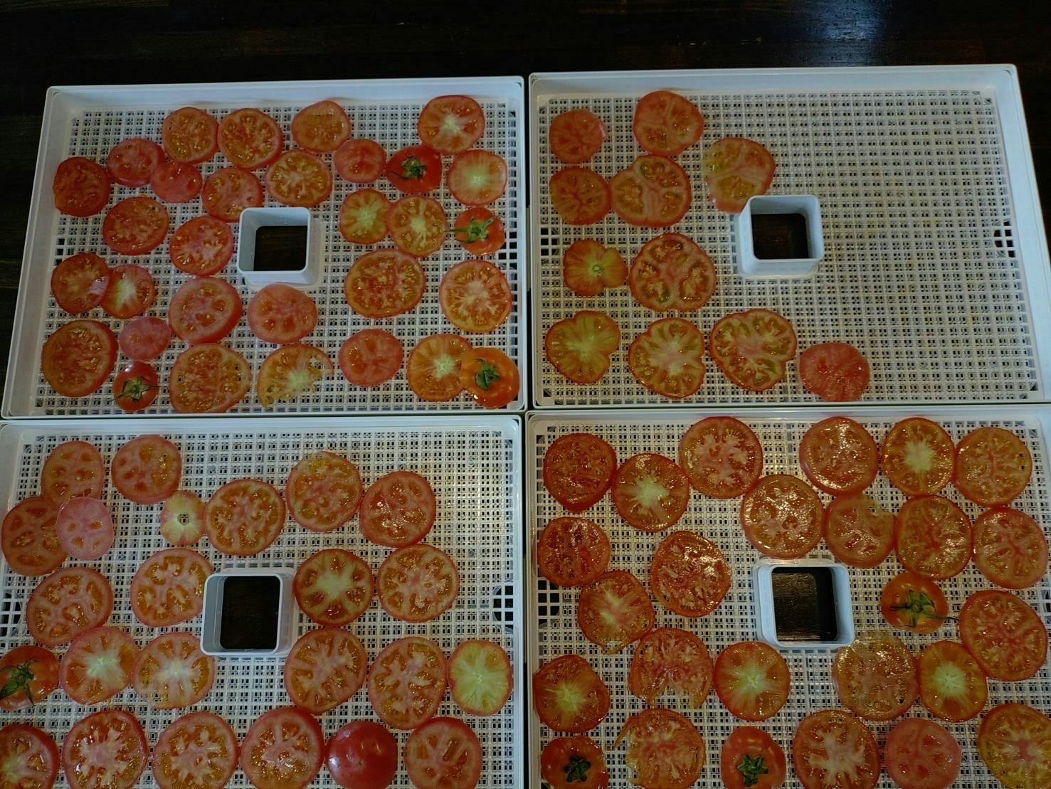 そして、ドライトマトも、スライスと木の葉切りとを組み合わせて乾燥。
