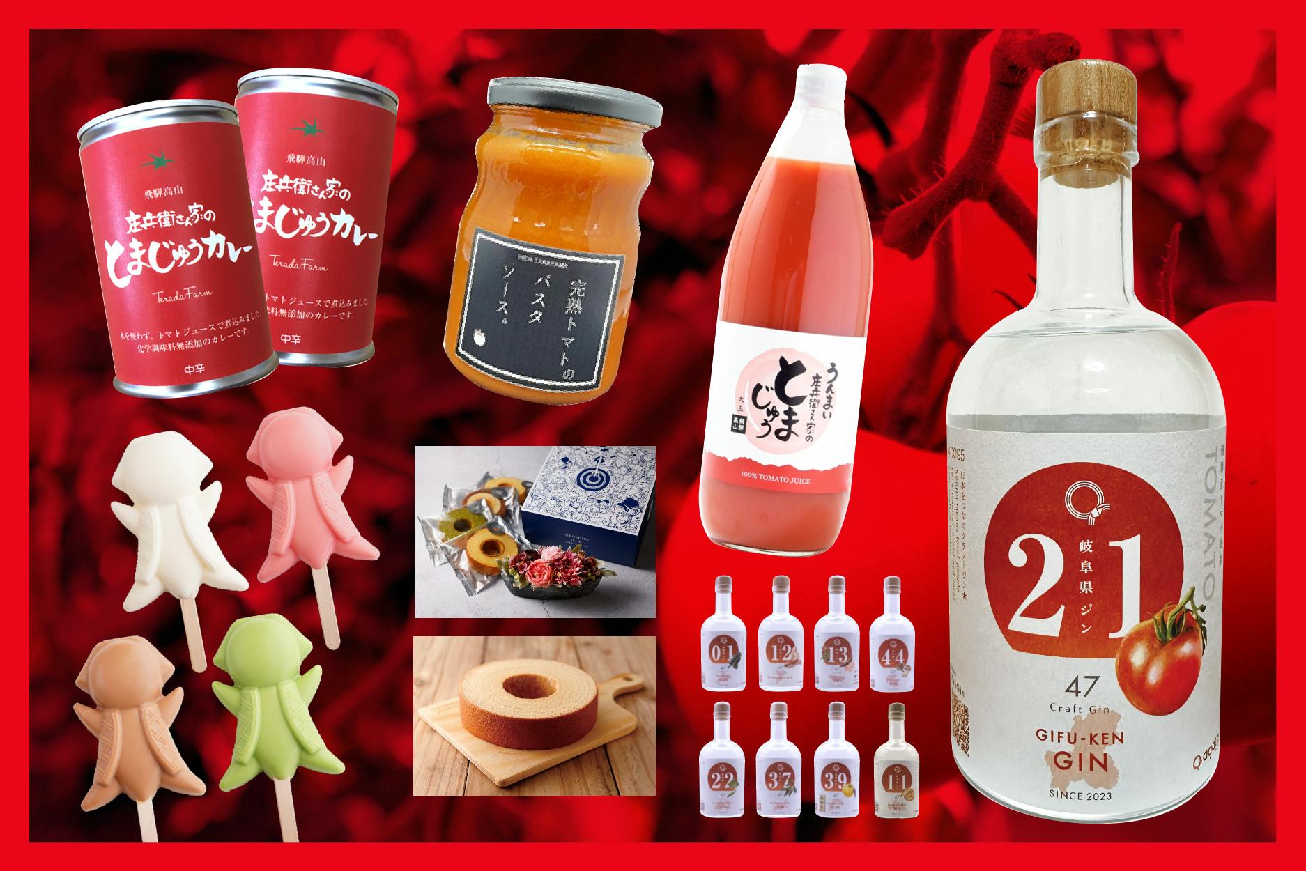 6、岐阜県 トマトジン1本 + さるぼぼアイスセット(4種2本づつ合計8本)