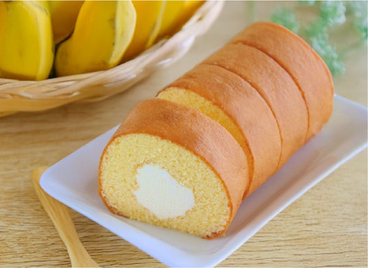 神バナナロールケーキしっとりとした牛乳仕込みのスポンジケーキで、神バナナの華やかな香りが広がるホイップクリームを包みました。神バナナを皮ごと使用したペーストを贅沢に練り込むことで、自然な甘みと豊かな香りをお楽しみいただけるロールケーキに仕上げています。