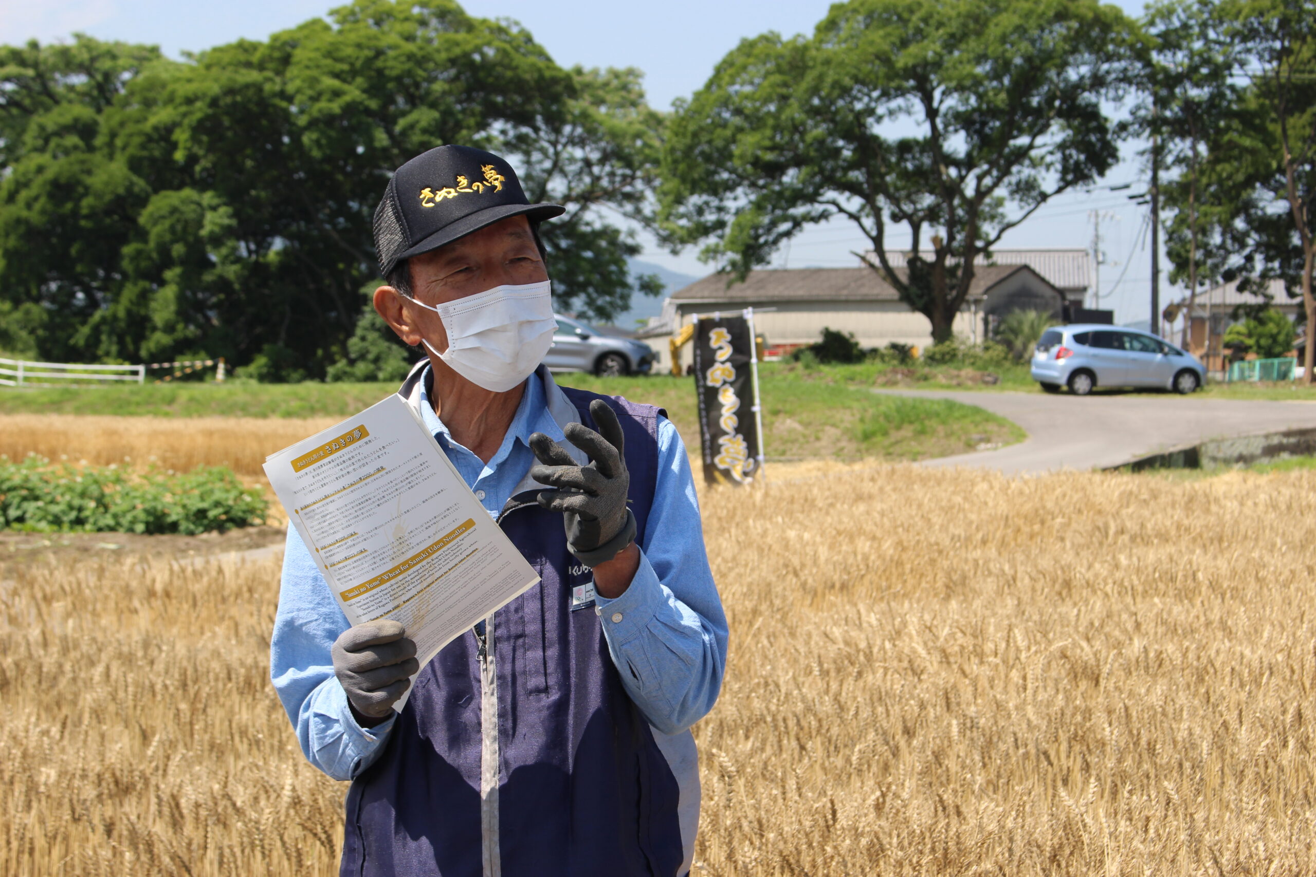 「さぬきの夢」の栽培をしてきた農事組合法人 六郷(丸亀市金倉町)の松浦正武代表は「紙一枚ほどの進み具合でも、たゆまなく研究してくれた農業試験場、試験員のおかげで良い小麦ができました。兼業、高齢者の多い集落ですが、協力しあって作付面積を維持しています。昨年は雨が多く、4割ほどしか収穫できなかったが、普及センターと相談し、科学的な情報をもって取り組んでおります。今年は種蒔き時の雨、その後の寒波で少し生育も遅れましたが、4月5月は暖かく、順調です」と笑顔で語ってくれた。