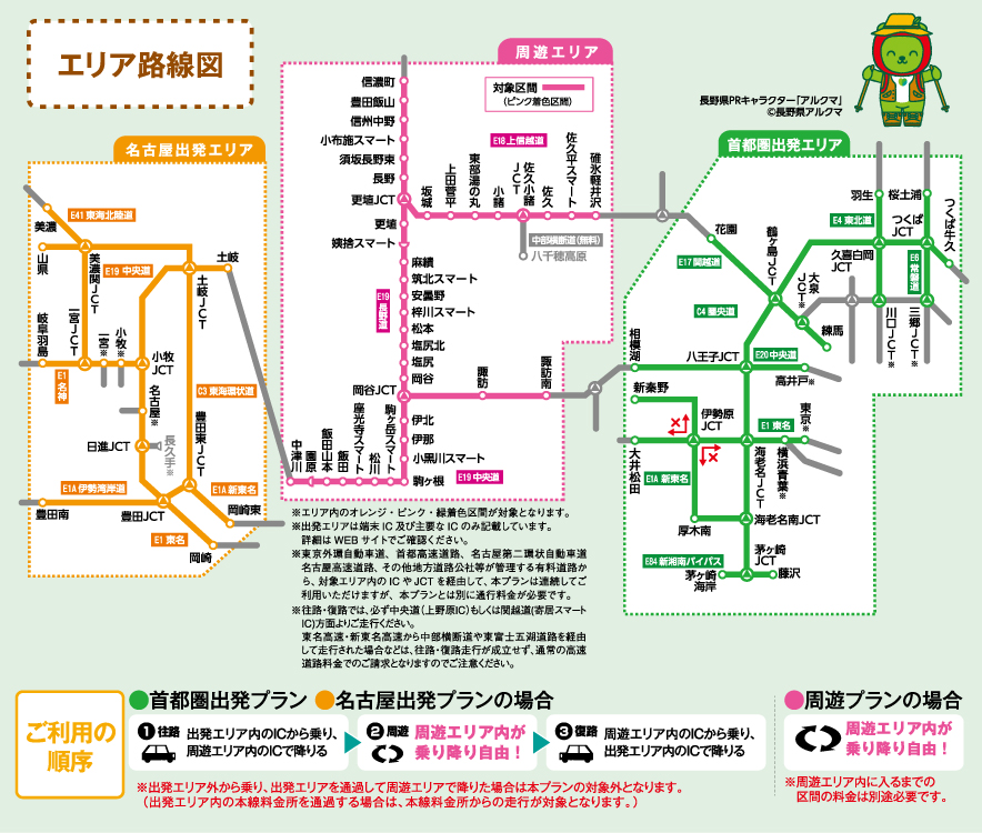 内容: 周遊エリア内乗り放題+名古屋出発エリア~周遊エリアの1往復