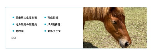 ・馬の世話(ブラッシング、餌やり、厩舎の清掃)