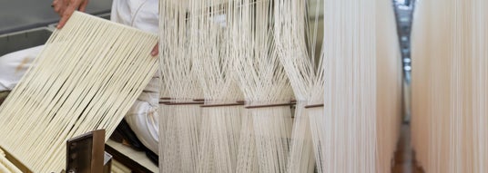 二種類のオリジナル小麦粉をブレンドし、製造工程で何度も捻りをかけ伸ばした後、しっかり熟成させることで強いコシとのどごしの良さを実現