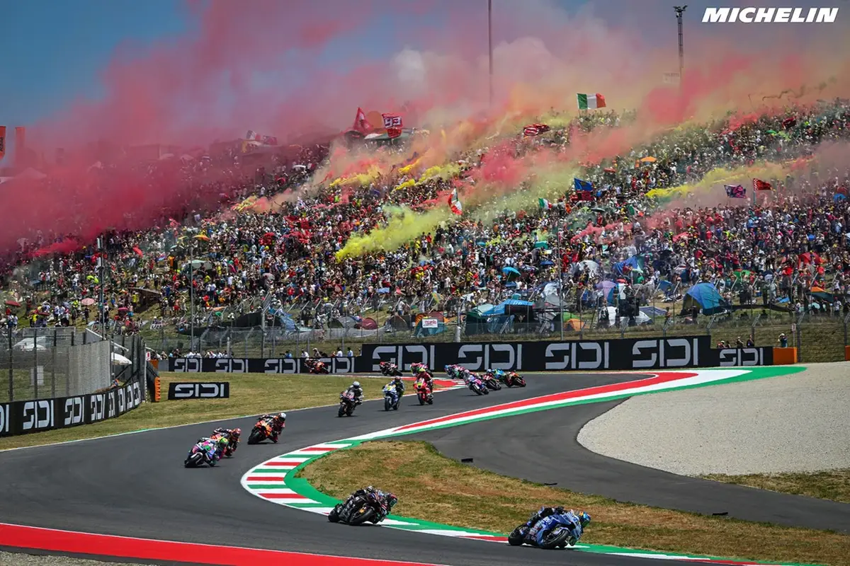 ムジェロはMotoGP開催コースの中では最長である1.141 kmという長さのストレートを持ち、最新MotoGPマシン各車は軒並み360 km/hを超えるトップスピードに到達します。また、通過速度が非常に高く、そのぶんタイヤにかかる負荷も非常に高いコーナーがいくつもあり、タイヤに試練を課すサーキットです。
