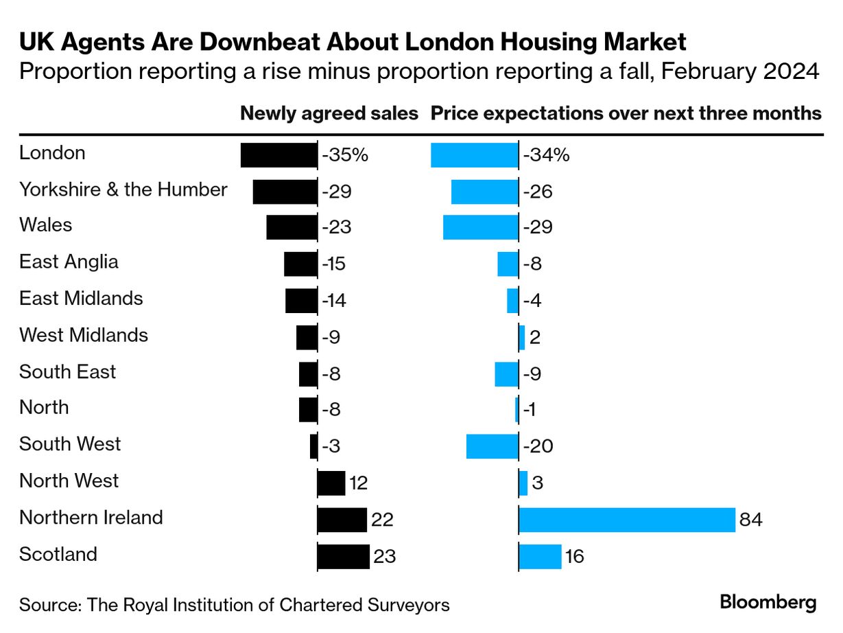 ロンドンの状況はさらに深刻だ。不動産取引件数は過去最悪の落ち込みとなり、需要も大幅に減退。不動産業者は、ロンドンの住宅価格が今後3カ月間、他のどの地域よりも大幅に下落すると予想している。