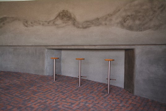 Niwa Fukuokaで採用している土壁は本来廃棄される珈琲の粉末を、仕上げ材として再利用。