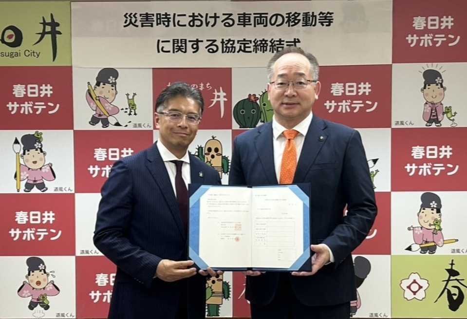 エートス協同組合(拠点:埼玉県さいたま市、理事長:宮本 明岳(株式会社タウ 代表取締役社長))は6月23日、愛知県春日井市と「災害時における車両の移動等に関する協定」の締結式を執り行いました。本協定は、災害時の迅速な道路啓開によって復旧活動に貢献することを目的としております。