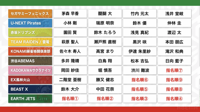7月:Mリーグ2025-26契約選手ならびにチーム構成の公表