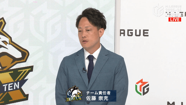 「内川幸太郎選手の自由契約を発表してから今日までがすごく長く感じました。阿久津翔太選手を指名した理由は大きく3つあります、ひとつは若さ(20代での現在最年少Mリーガー)、ひとつは麻雀に対して真摯で勤勉であること。もうひとつは成長していける余地があること。ただ、現時点でも既に相当強い選手です」