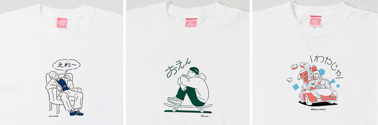 ▲(左から)えれー[I’m tired.]、おえん[Oh no…]、わやじゃ[What a mess!]