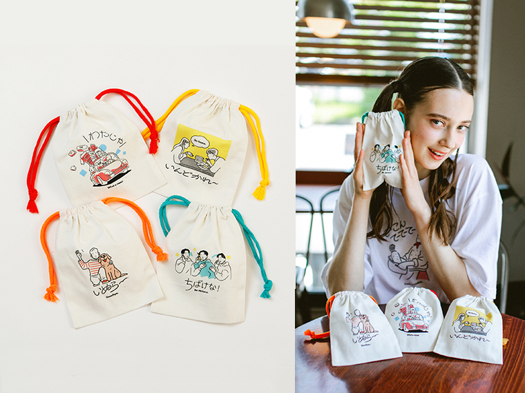 日常の中で岡山弁をもっと気軽に楽しめるクセグッズに、巾着ポーチが新登場!