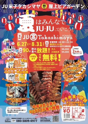 現在、JU米子タカシマヤ屋上で「屋上ビアガーデン」開催中です。
