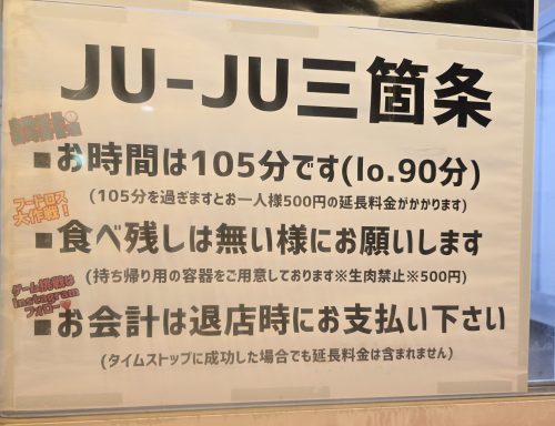 ※時間は1人105分 (L.O.90分) ※延長料金30分500円(自動延長)