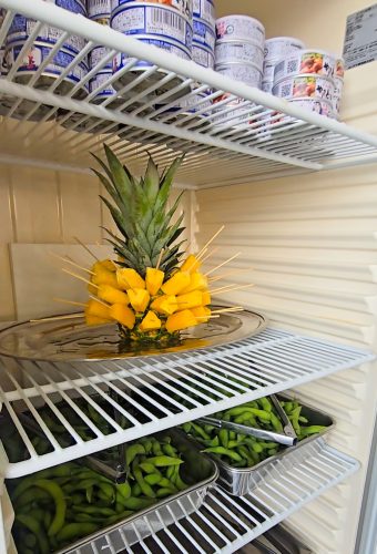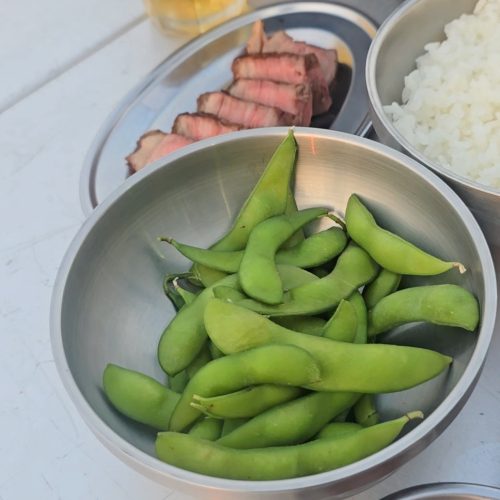 冷蔵庫には枝豆、やきとり缶、パイナップルが入っています。