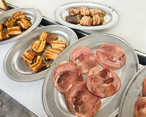スタッフの方が炭火で焼いて、お皿に分けてくれます。