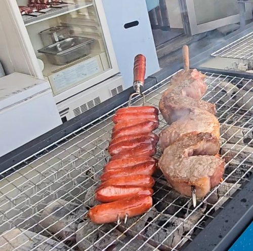 ブラジル発祥の肉料理「シュラスコ」。味付けはシンプルに岩塩のみです。