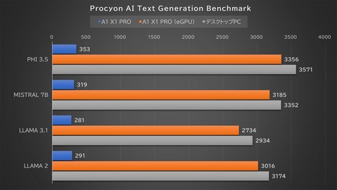 「Procyon AI Text Generation Benchmark」の結果