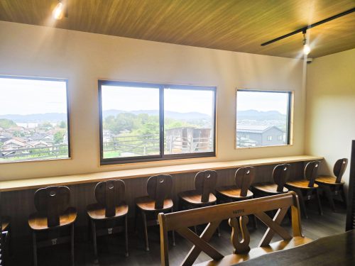 入って左手には、部屋を囲むように設置されたカウンター席と、テーブル席が並ぶイートインスペースがあります。