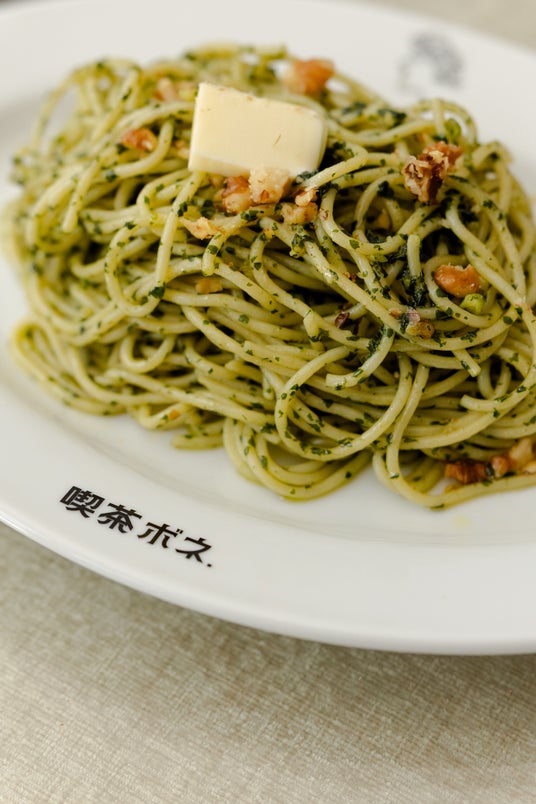 「喫茶ボネ.」の新たなシグネチャーとして生まれた「バジリコ」は一般的なバジルのパスタではなく“青じそ” を使用した、和の風味が広がるオリジナルレシピ。