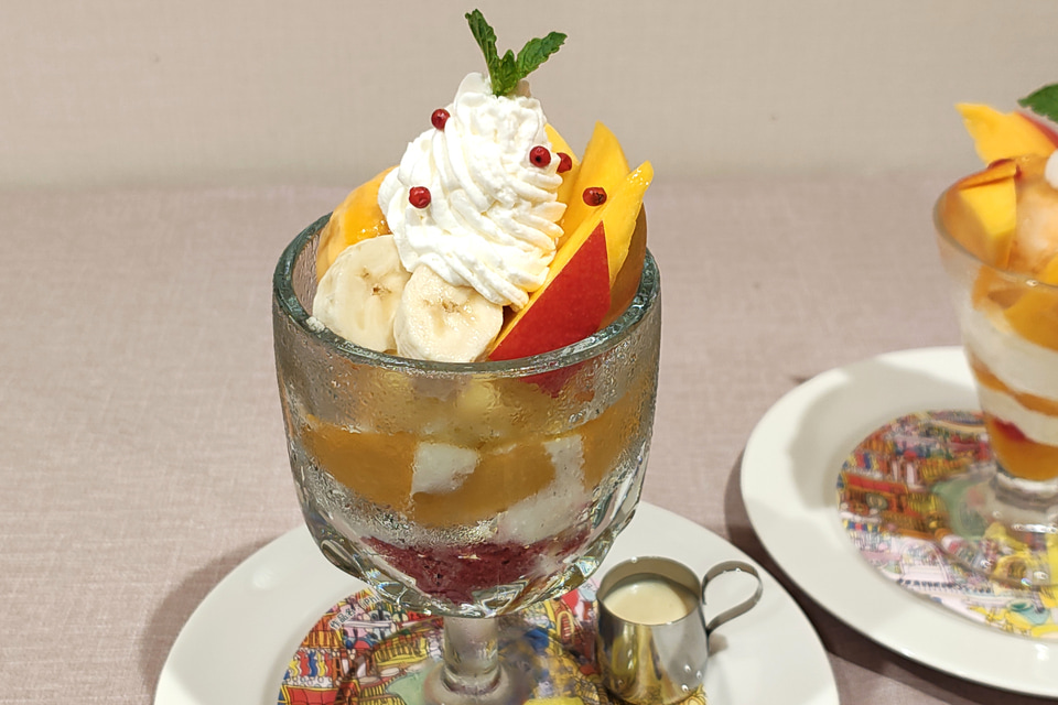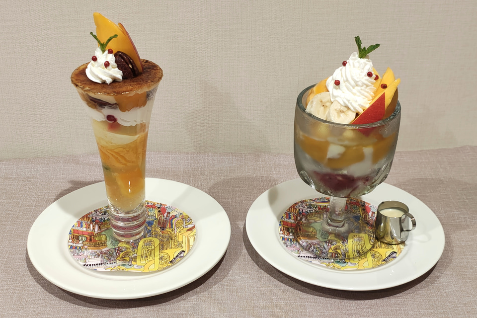 今回試食した2品のほかには、マンゴー果肉とマンゴーアイスにライムジュレを合わせてホイップクリームとグラノラで仕立てた「アップルマンゴーパフェ」、マンゴースムージーとミントジュレを混ぜながら飲む「マンゴー&ライムジュレスムージー」、食事とセットで注文できる「プチマンゴーパフェ」の3品を用意する。
