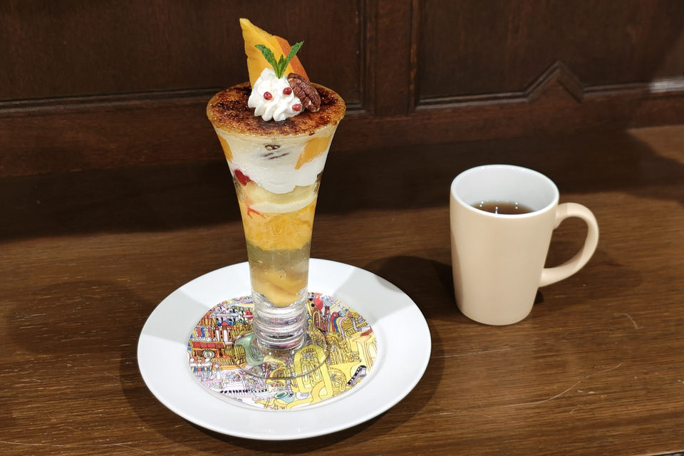 ドリンクバーで提供している紅茶「TEARTH」とのペアリングも提案たとえば「アップルマンゴーのブリュレパフェ」には「デカフェアールグレイ」が合う