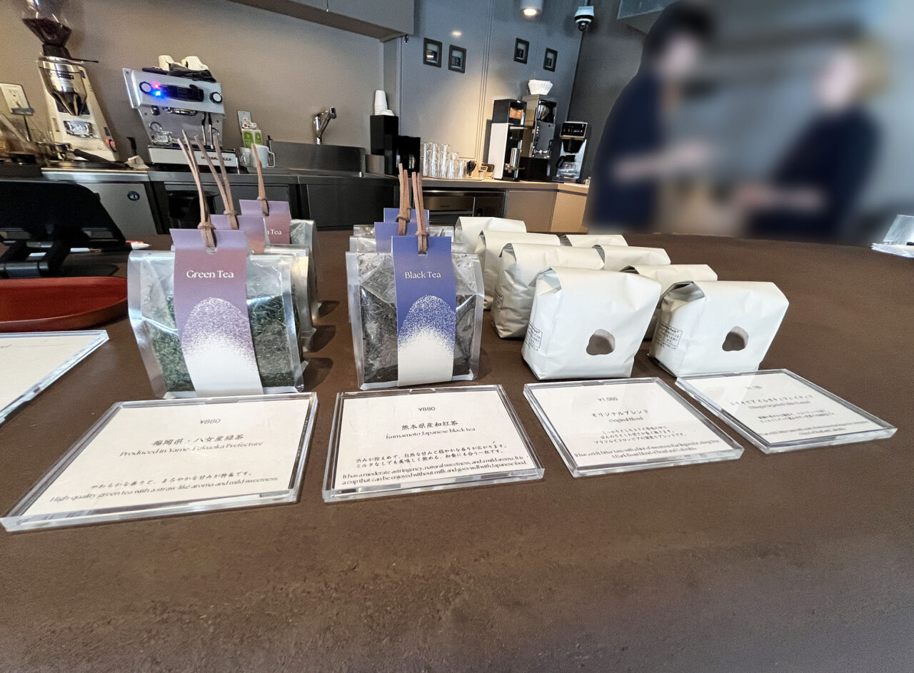 「福岡県産 八女産 緑茶」や「熊本県産 和紅茶」など、おうちでもティータイムが楽しめる茶葉やドリップバッグなどの商品販売も行っています。オシャレなパッケージなので、ご自宅用にはもちろん贈り物などにも最適です。