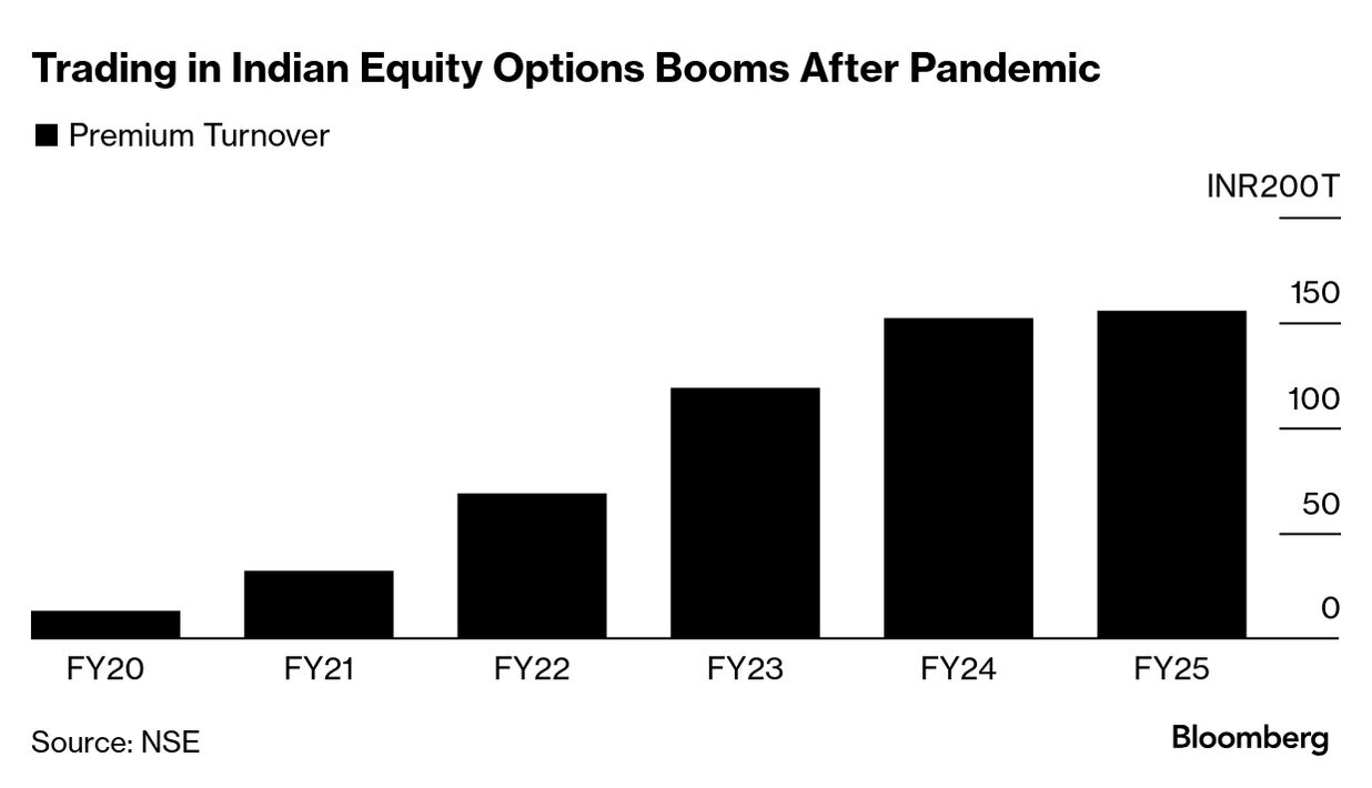個人投資家主導のブームにより、オプションの取引高は2025年3月までの5年間で11倍に拡大。これにより、アルゴリズムを活用する国内外の業者が恩恵を享受し、SEBIの調査によると、24年3月までの1年間で得た粗利益は合計で70億ドルという。