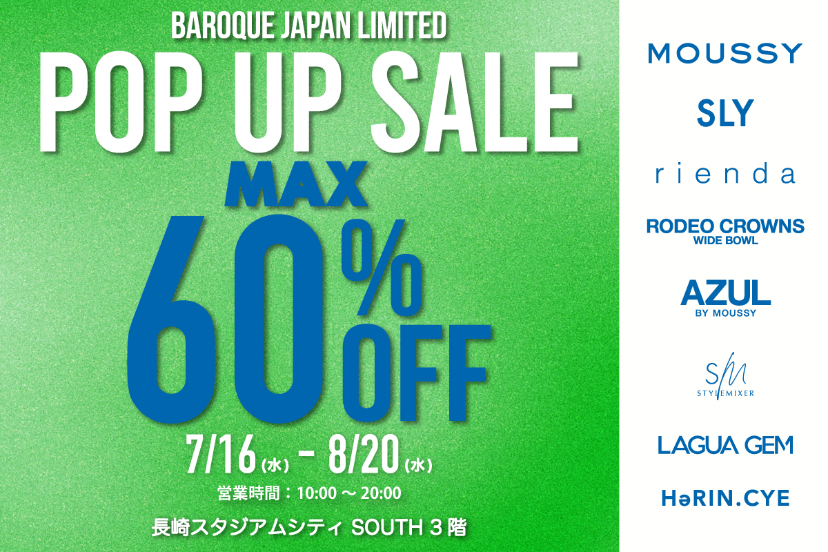 MOUSSYやSLYなどをはじめとする人気ブランドのアイテムが勢ぞろいし、MAX60%OFFでご購入いただけます。お得なこの機会をぜひお見逃しなく!