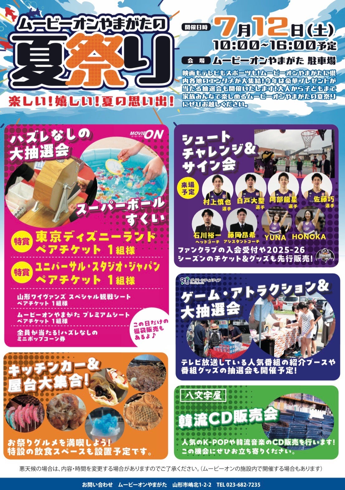 7月12日(土)にムービーオンやまがたにて『ムービーオンやまがたの夏祭り』を開催します。