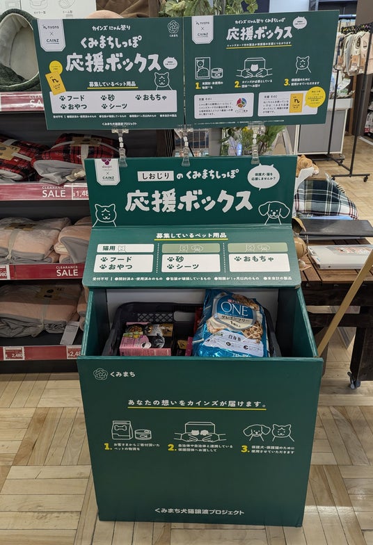 保護猫譲渡会実施時に設置された「くみまちしっぽ応援ボックス