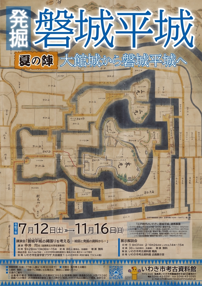 7月12日(土)から11月16日(日)までの間、いわき市考古資料館(福島県いわき市)において令和7年度第2回企画展「発掘!磐城平城 夏の陣 大館城から磐城平城へ」が開催されます。入館無料。