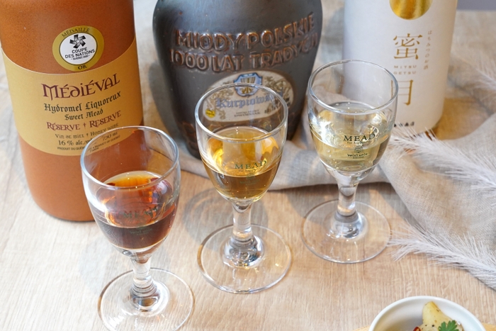 ミールミィ三条本店に併設の「ミールミィハニーカフェ」では、8月限定で各国のミードを1杯から気軽に楽しめる特別メニューをご用意します。蜂蜜から造られるお酒「ミード」を、世界各国からセレクト。