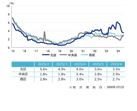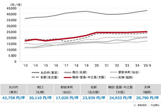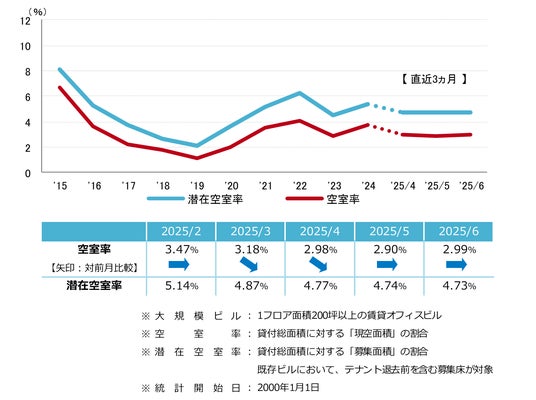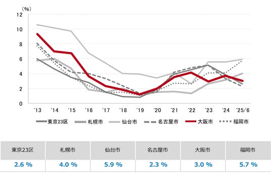 三幸エステート株式会社(本社:東京都中央区、取締役社長:福島正二郎)は、2025年6月度の大阪市オフィス賃貸状況(空室率&現空面積:大規模、募集賃料&募集面積:大規模、規模別空室率、主要3区※1空室率:大規模)および全国6大都市(東京・札幌・仙台・名古屋・大阪・福岡)の大規模ビルのマーケットデータをまとめた「オフィスマーケット2025年7月号大阪」を公表します。